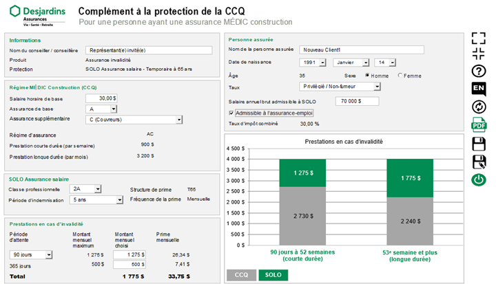Le calculateur Complément à la protection de la Commission de la construction du Québec (CCQ) permet de déterminer le manque de protection d’une personne couverte par l’assurance offerte par la CCQ.