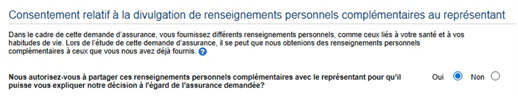 Le consentement relatif à la divulgation de renseignements personnels complémentaires au représentant est